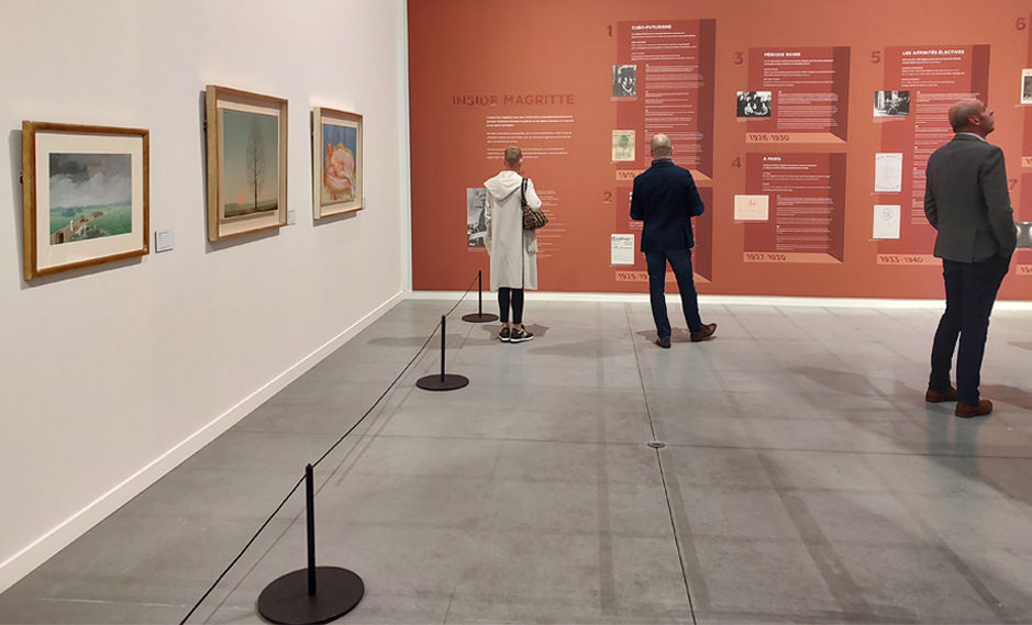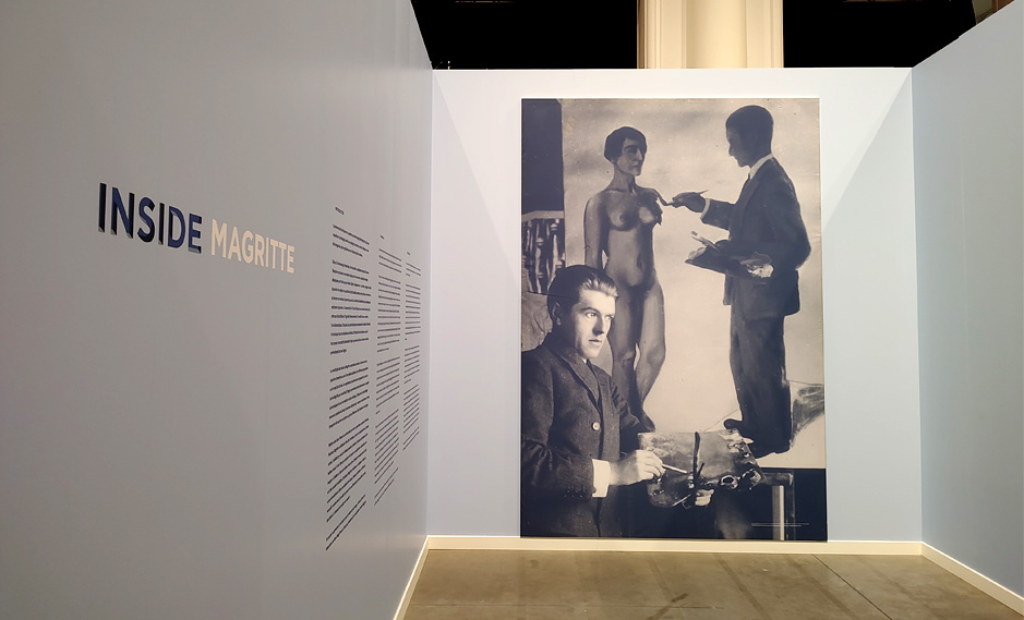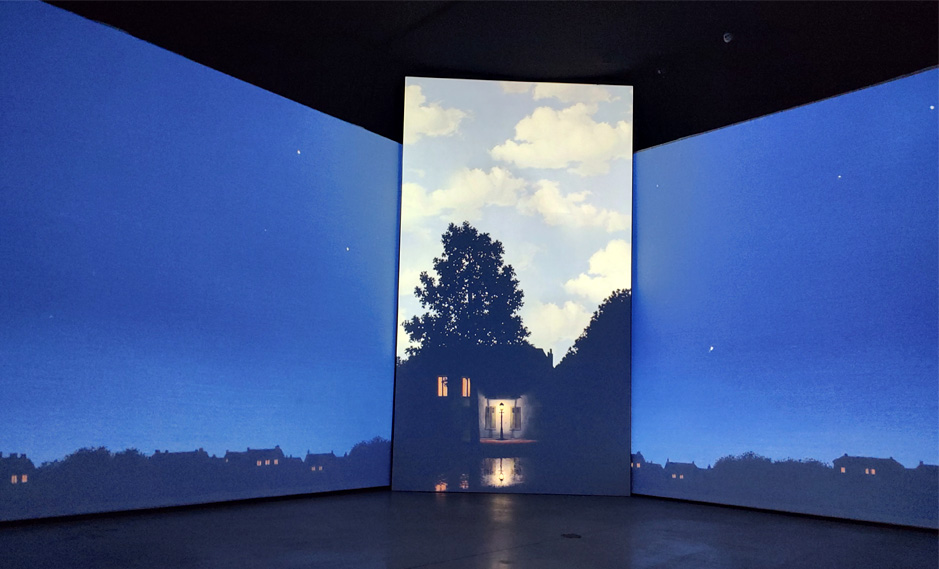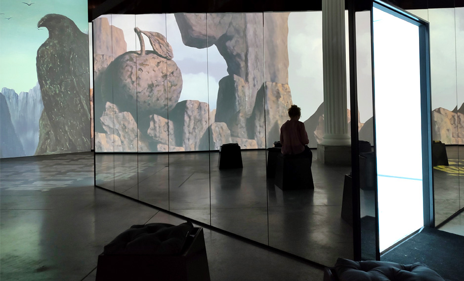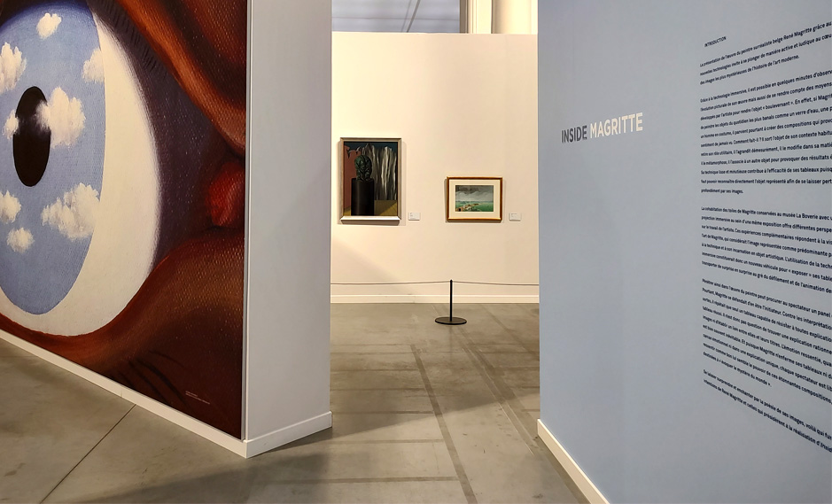 Inside Magritte est une exposition immersive virtuelle consacrée au célèbre peintre surréaliste. Elle propose de plonger de manière active et ludique dans l’univers du peintre à l’aide de projections à 360 degrés.